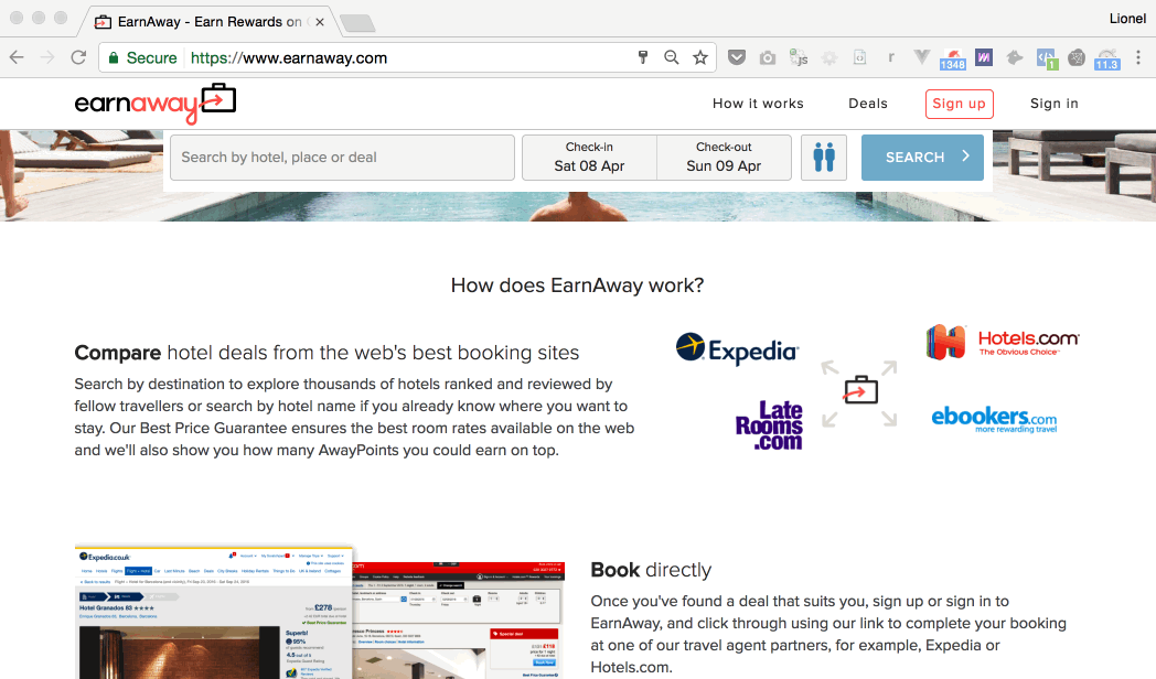 Multi-search involves grouping results in pre-defined categories. It applies more to web platforms that provides a listing of a limited set of possible results, like EarnAway.com (shown below). There are only so many places and hotels you can choose from. You will likely be searching by city, neighborhood, airport, or the exact name of a hotel.