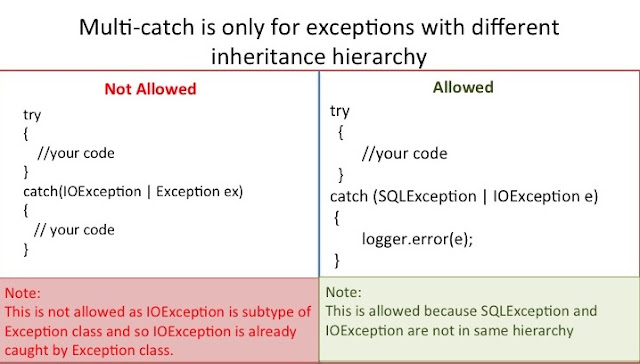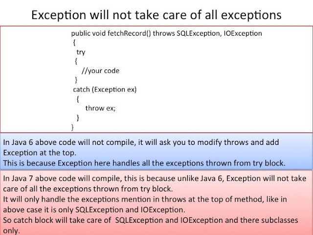 In Java 7 Exception will not handle all the exceptions, to understand this refer below image