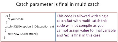 In this post I am going to introduce you with java 7 modified try-catch block. I am not going to start from scratch, but if some one wants to understand basics of try catch block, do let me know, I will write a separate article. As there are multiple changes to try-catch block I will cover them in series of posts with one change per post.