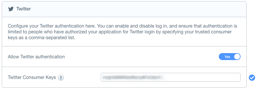 And finally let’s jump back to Parse.com and fill in our missing Twitter piece - again if it’s all good then you’ll get a nice blue tick.