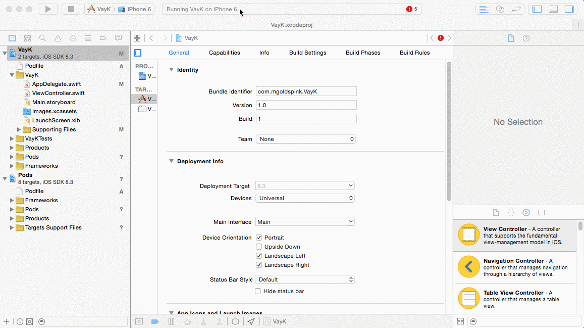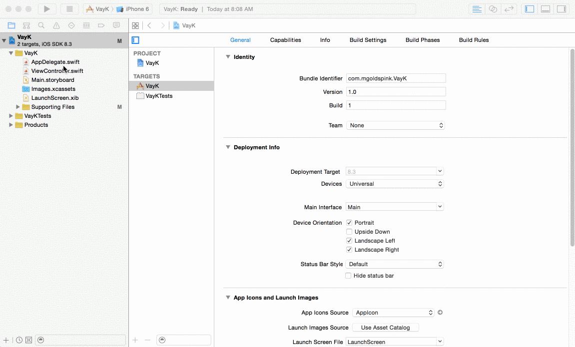 The one thing that we need to note here is the Bundle Identifier - in my case it’s com.mattgoldspink.VayK