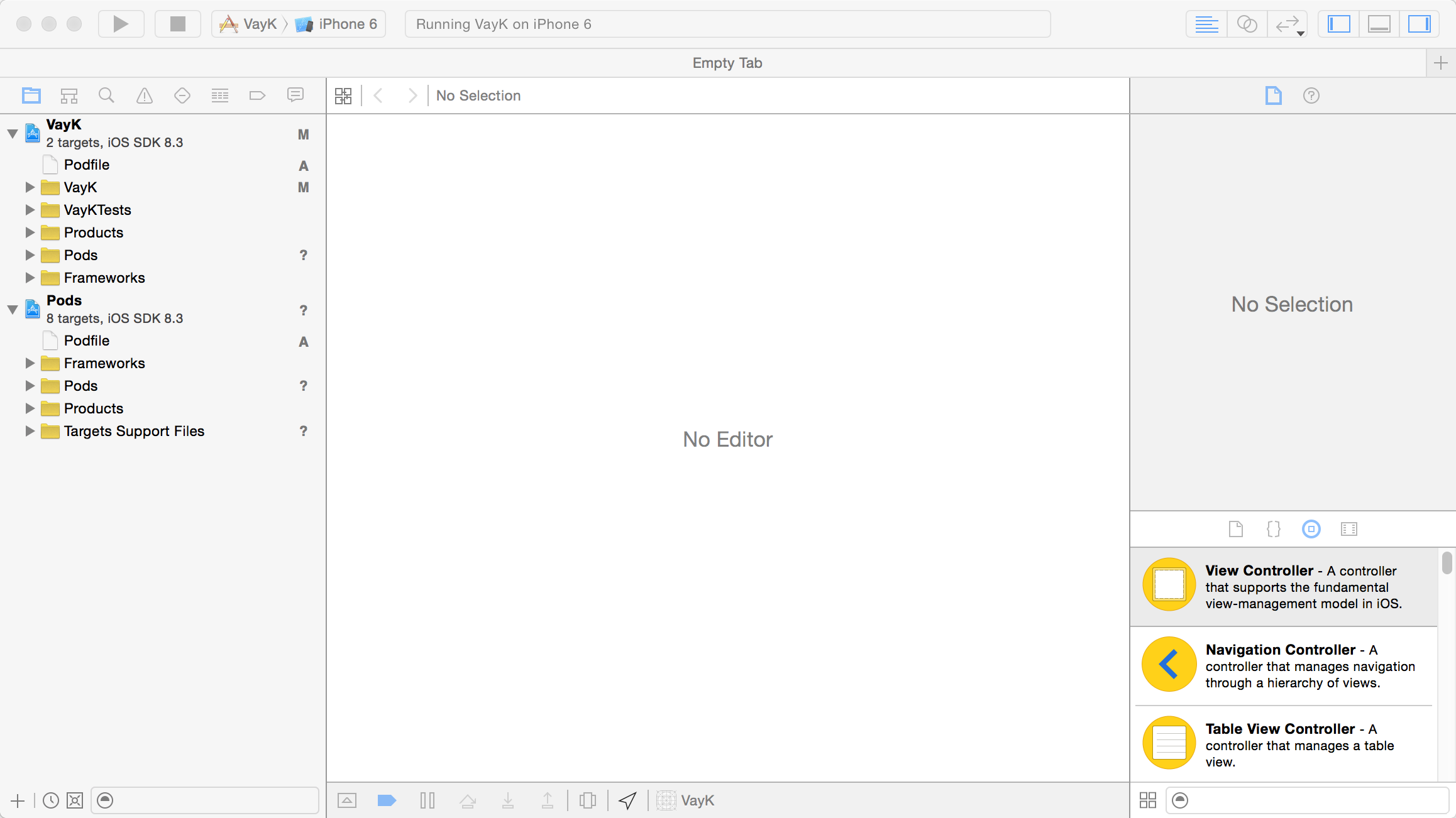 Quickly build and run the project and ensure there are no errors. You should see it compiles all the frameworks we installed using Cocoapods before it starts to compile your project. If it compiles and runs (you won’t see anything on the simulator yet), then we’re in great shape to start writing some real code!