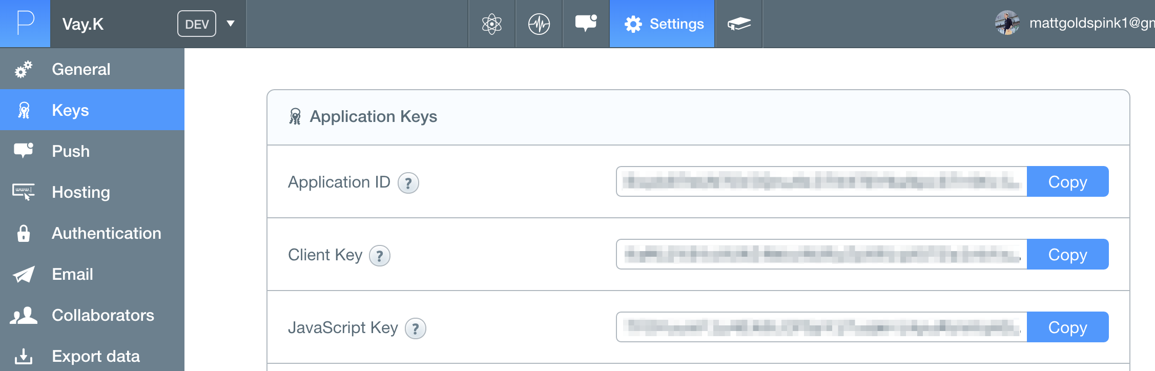 Parse.setApplicationId(“<Your Parse Application ID>", clientKey:”<Your Parse Client Key>")