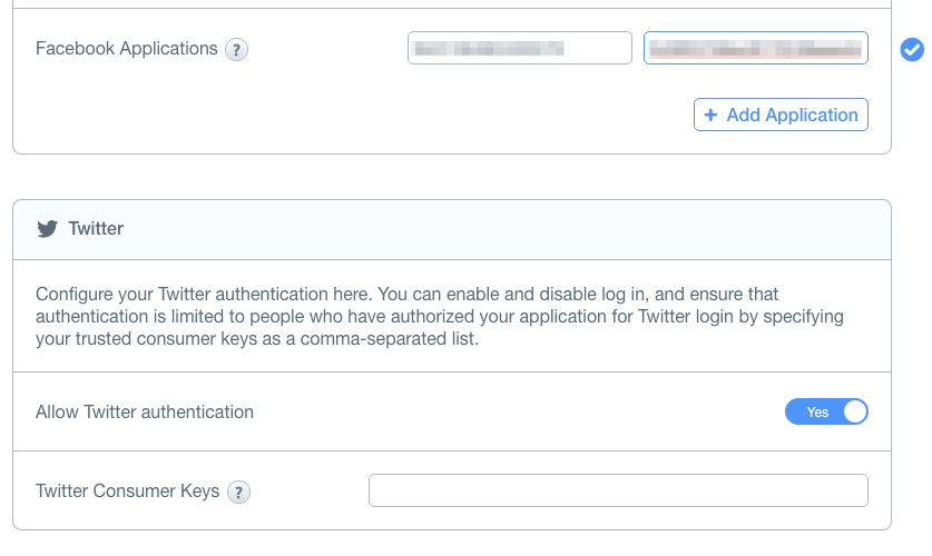 Head back over to Parse where we left off, and fill in the blanks for Facebook Auth. If all goes well when you add them, you should see a nice blue tick next to it.