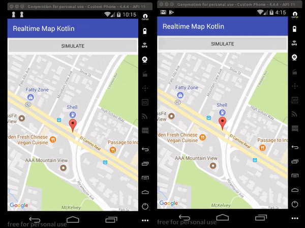We first created some class variables to hold our initial coordinates and other map utilities like the camera position and the marker position. We initialized them in the onCreate function. Next, we added a click listener to the simulate button.