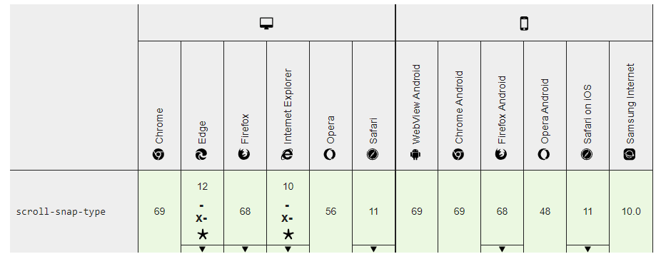 Let’s evaluate the browser compatibility of the scroll-snap-type property on different desktop and mobile browsers.