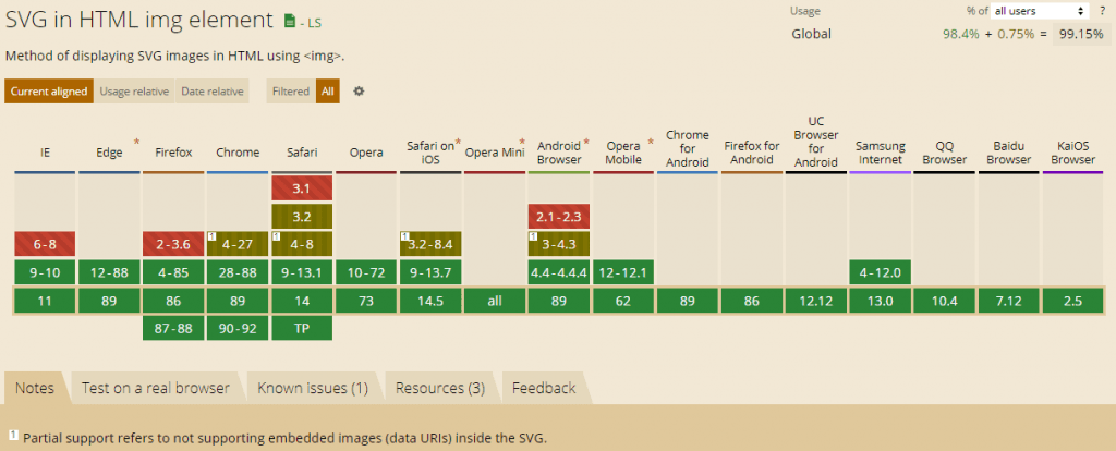 Let’s evaluate the browser compatibility of SVG on different desktop and mobile browsers.