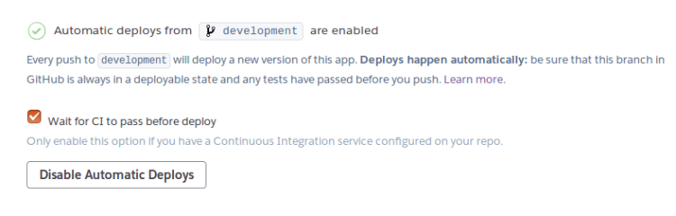 This is how I have configured Heroku Pipeline to auto deploy every Pull request made to the Development Branch and help in easing the Pull Request review process.