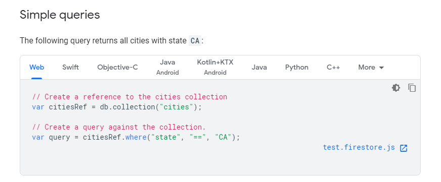 - Cloud Firestore: You can use index queries with good compoundfiltering and sorting. You can use sorting, combine filtering and chain filter on every property in one single query. Here queries are light; they only return a document in the particular collection or the group of the collection but never return sub collection data. It means that Firestore Queries must return the whole document.