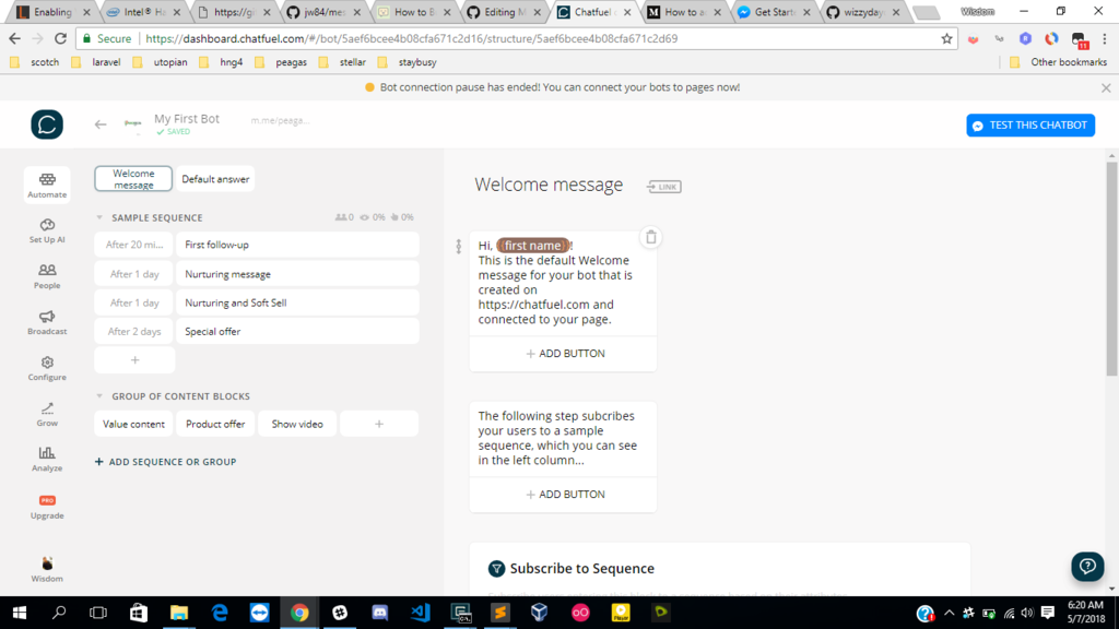 Once you click on “Continue”, you’ll be redirected back to Chatfuel.