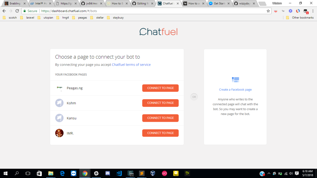 2. Choose a page to connect your bot to